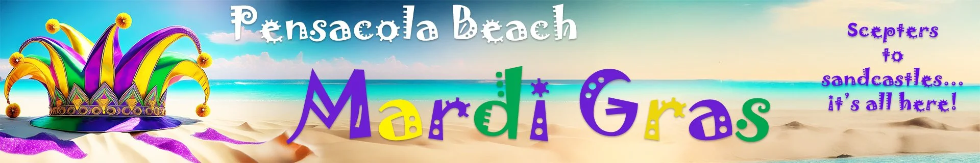 Pensacola Beach is awash in purple, green and gold on Krewe of Wrecks parade day. The parade rolls, rain or shine, along Via de Luna. Celebrate Mardi Gras on the Island. Click on the Wrecks logo for more and check out our “Parades” page.